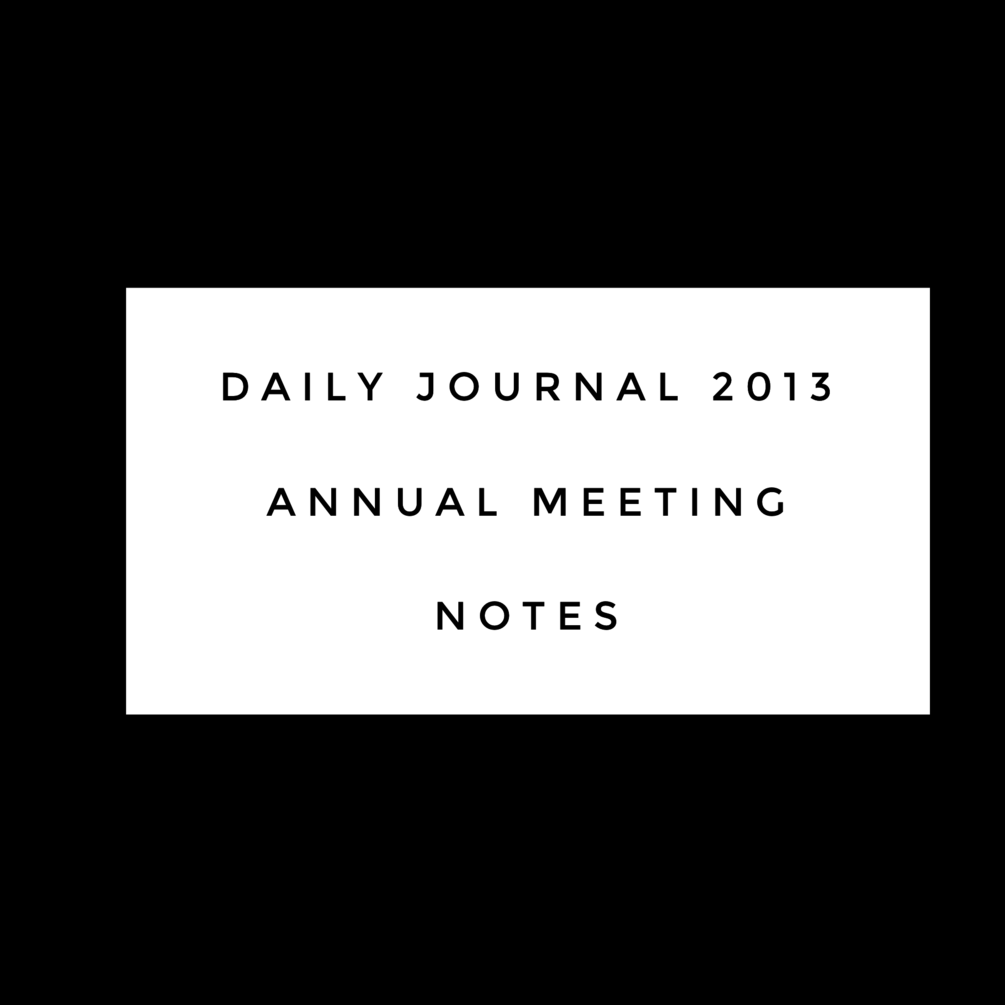 Detailed notes (39 Pages in total) of Charlie Munger talking at the 2013 Daily Journal Meeting (Held Feb 6, 2013).